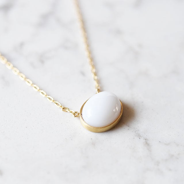 ホワイトカルゼドニー・オーバルカボションのシンプルネックレス