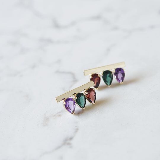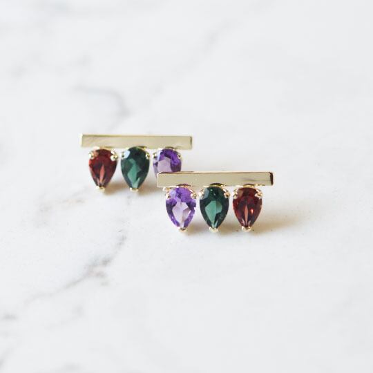 マルチカラーのバースタッドピアス