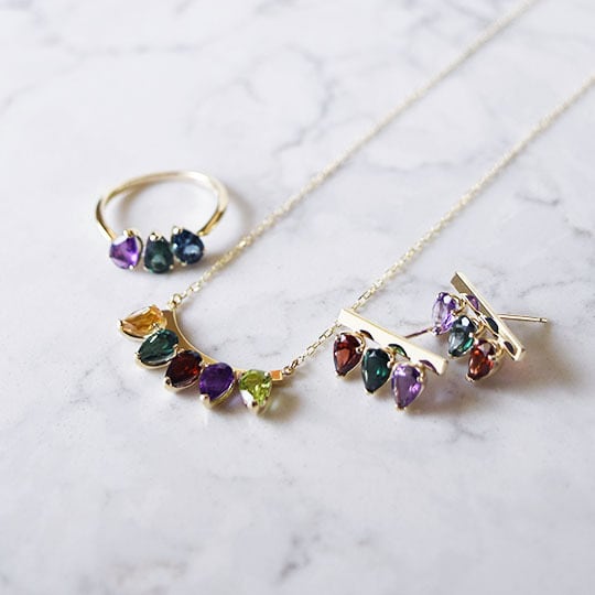 K10YG シトリン/グリーンクォーツ/ガーネット/アメシスト/ペリドット
