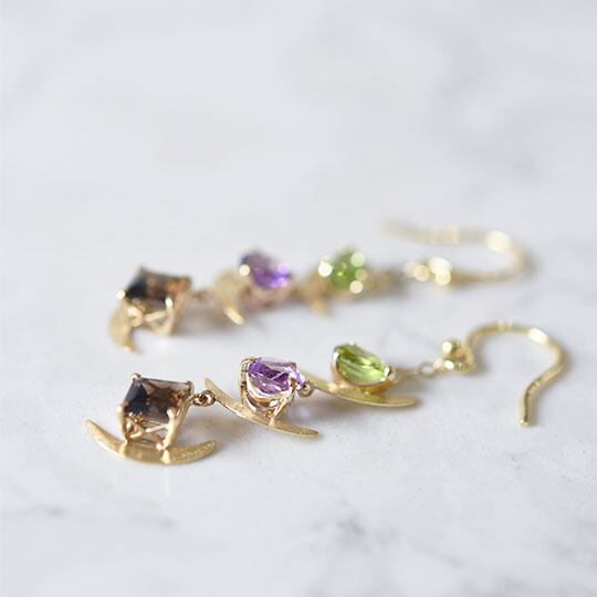それぞれのストーンにマット仕上げの三日月が寄り添い、愛らしい。